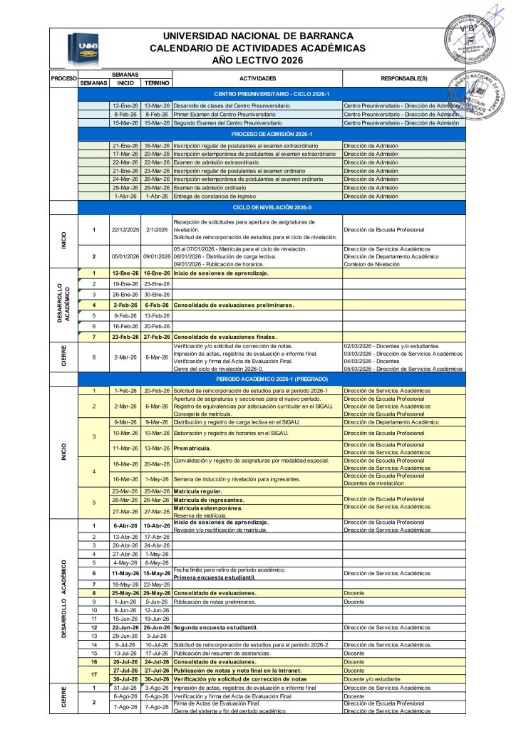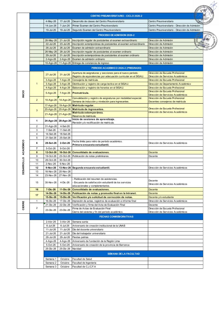 Calendario Académico 2026-0 // 2026-1 Descargar